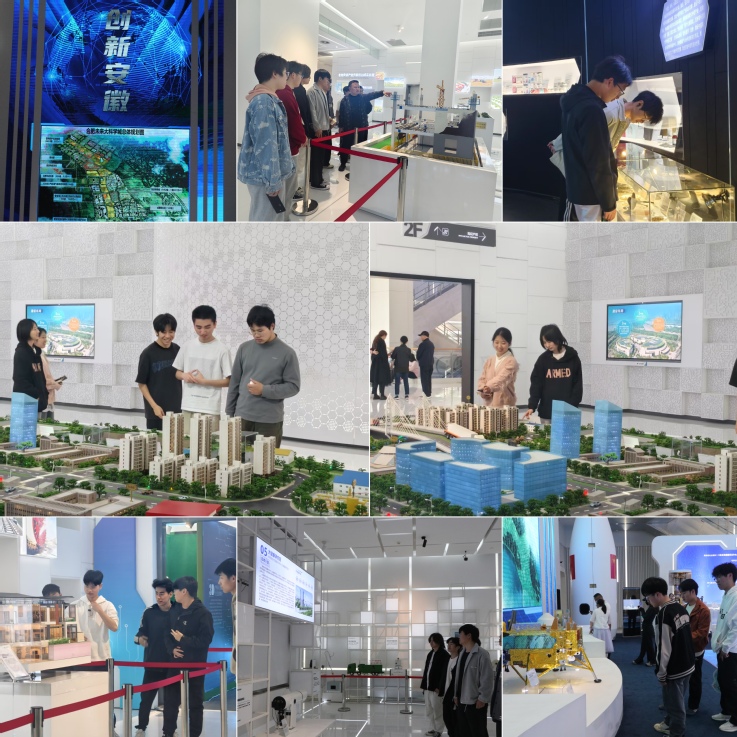 在安徽创新馆,师生们通过观摩安徽创新发展的基因、动力、成果和未来,深入了解了嫦娥探测器、智能建造模型等前沿科技成果,激发了对科技创新的使命感与责任感。