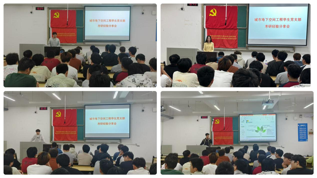 此次考研经验分享会的成功举办,不仅为有考研意向的同学搭建了一个学习交流的平台,让同学们汲取了宝贵的备考经验,明确了努力方向,也充分发挥了学生党员的先锋模范作用,展现了城市地下空间工程学生党支部团结奋进、积极向上的精神风貌。相信在党支部的关心支持和同学们的共同努力下,更多同学将在考研的道路上披荆斩棘,实现自己的学术理想。(文/图:李婉琳、张昕、李童;一审:叶训;二审:马智鑫;三审:王媛)