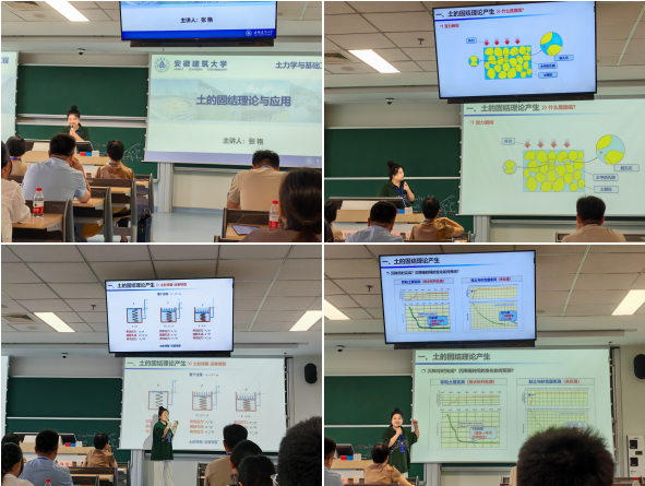 本届研讨会以“深化土力学教学经验共享、推动课程体系创新”为目标,设置了大会特邀报告、分会场专题研讨、青年教师讲课交流等多元环节,覆盖“课程思政融合”、“人工智能赋能教学”、“实践教学模式创新”等多个细分议题,为全国高校土力学教师搭建了前沿理念碰撞的平台。 张艳老师以“土的固结理论与应用”为主题在大会“青年教师讲课交流”分会场中进行了精彩分享与交流。她结合工程案例,从理论推导到实际应用层层递进,生动诠释了土力学核心理论的教学逻辑。此次交流得到了专家好评,充分展现了beat365在线唯一官网青年教师扎实的科研功底和优秀的教学风采。
