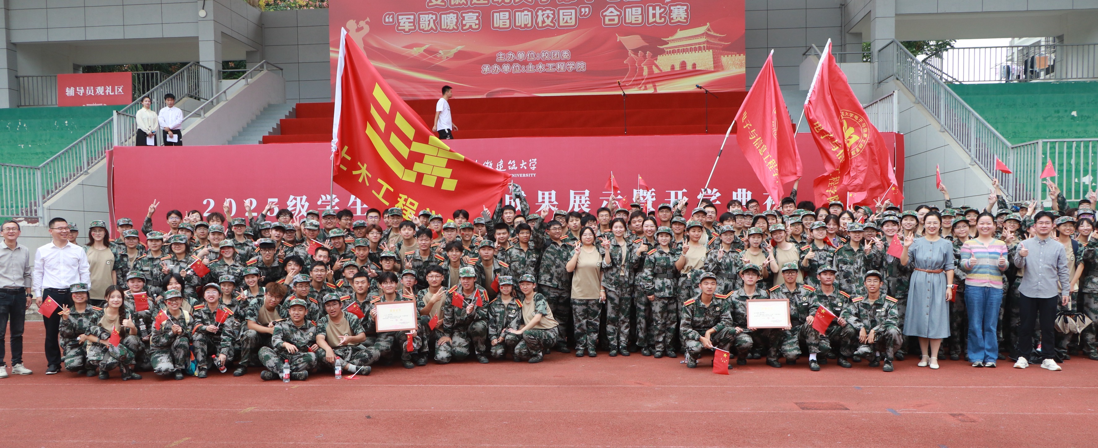 本网讯 秋风飒爽,军歌嘹亮。为进一步强化学生爱国主义精神与国防观念,传承红色基因,近日,由校团委主办,土木工程学院承办的beat365在线唯一官网第十七届“军歌嘹亮 唱响校园”军歌大赛在紫云路校区顺利举行。这既是一场军事风采与艺术魅力的双重盛宴,更是建大学子以青春之名,向英雄、向军营献上的深情礼赞。