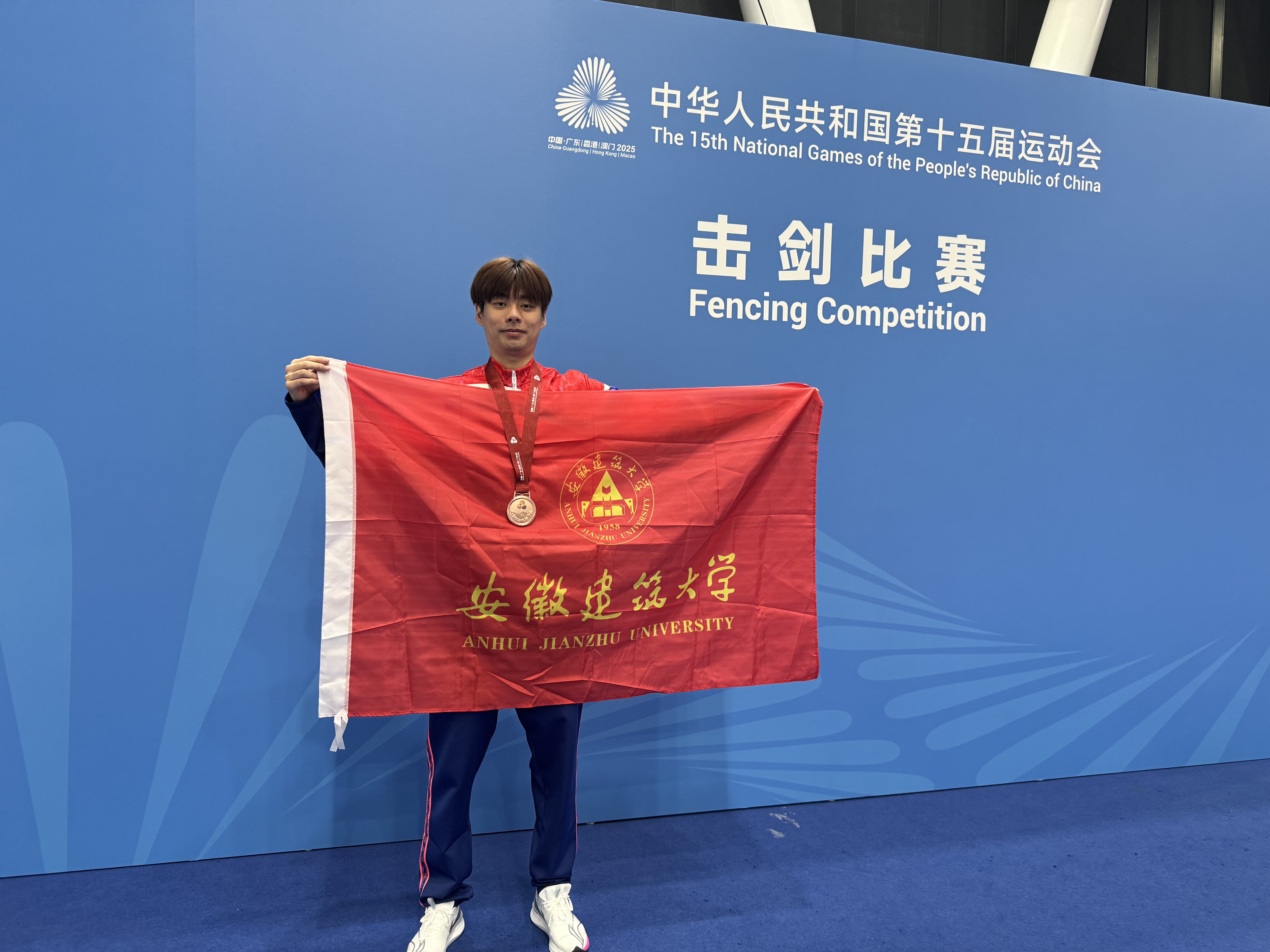 本网讯11月9日,第十五届全国运动会在广州隆重开幕,中共中央总书记、国家主席、中央军委主席习近平出席开幕式。本届全运会击剑项目于11月15日至20日在香港启德体育园举行,beat365共有12名高水平击剑运动员参赛,在19日的男子花剑团体赛中,beat365公管学院2022级人力资源管理专业吴斌同学与队友协同作战,斩获男子花剑团体铜牌。此外,beat365两名校友也在本次全运会比赛中夺得2枚金牌。