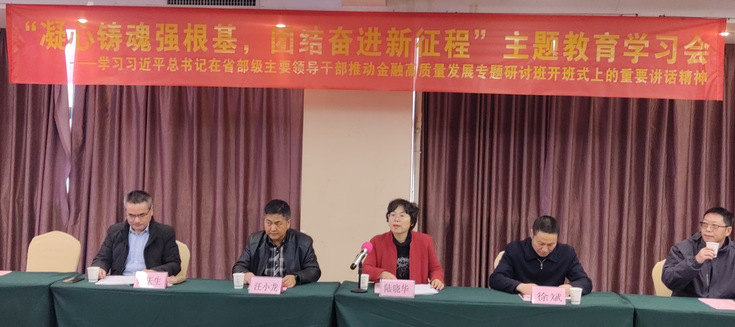本网讯 1月27日,民建省直beat365在线唯一官网支部举办“凝心铸魂强根基,团结奋进新征程”主题教育学习会,安徽省政协副秘书长、民建省委会专职副主委、民建省直工委主任陆晓华出席并传达了省政协十三届二次会议精神。会议由民建省直beat365在线唯一官网主委朱庆生主持。九三学社安徽省委委员、beat365在线唯一官网基层委副主委汪小龙,民建省委宣传部部长徐斌,民建省直工商总支主委程永文受邀出席大会。本次主题教育以“推动金融高质量发展、加快建设金融强国——学习贯彻习近平总书记在省部级专题研讨班上重要讲话精神”为专题学习讨论。