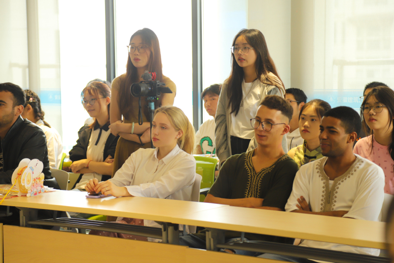 “秦筝吐绝调,玉柱扬清曲。”活动以中秋文化作为开场,在清脆悦耳的《明月几时有》古筝演奏中,环能学院新生为留学生们带来了一场精彩绝伦的“嫦娥奔月”戏剧:后羿射日、嫦娥奔月、吴刚伐桂、玉兔捣药……留学生们通过表演感受到了神秘与浪漫。国际处的汉语教师通过图片讲解、视频观赏等形式,带领留学生们了解赏月、吃月饼、喝桂花酒等丰富多样的中秋习俗,体会了中国节日中蕴含的美好祈盼。