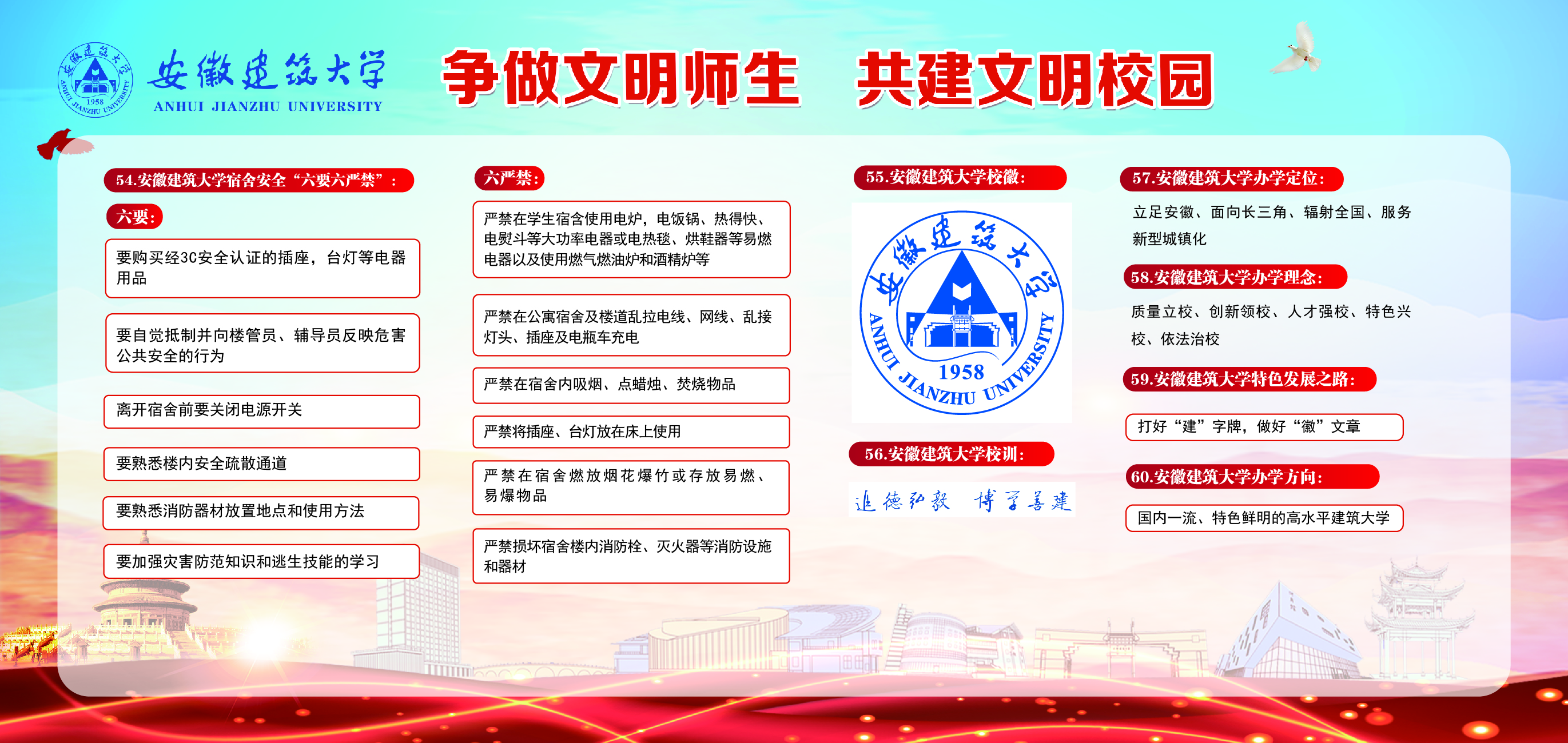 编者按:当前,beat365正在积极开展文明校园创建,这是提升校园文明程度、提高校园文化建设水平、促进师生共享校园文明创建成果的重要契机。“争做文明师生,共建文明校园”是每一名建大师生义不容辞的责任和义务,需要全体建大人共同参与和努力。这些关于文明创建知识你了解多少,赶快来学习吧!
