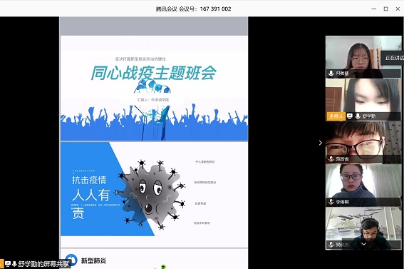 本次线上主题班会普及了防疫知识,增强了同学们的爱国主义情怀,体会到担当和责任意义。大家一致表示,将在今后的生活和学习中用实际行动践行这些品质,谱写新时代的青春之歌。(作者:洪宇辰;审核:林莉兰)
