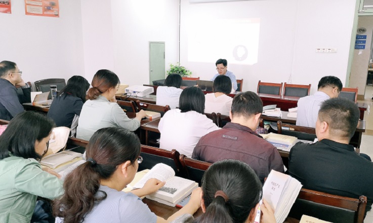 读书班通过诵读的方式学习了《中国共产党简史》第一章的内容,全体成员围绕“学党史、悟思想、办实事、开新局”这一主题,结合工作实际做交流发言。外国语学院党总支组织员丁安平带领大家重温了党的三大优良作风,指出新阶段更要时刻保持理论和实践相结合、密切联系群众、批评和自我批评这三大优良传统。外国语学院党总支委员陈月娥围绕百年党史学习,梳理了中共党史发展脉络,阐述了学习党史的现实意义。