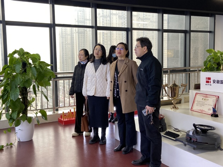 安徽轻工国贸纪委书记谭栋敏、校友刘建等热情接待了徐春山一行,陪同参观了安徽轻工国贸展示中心,并召开座谈会。