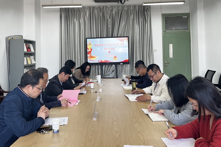 本网讯 3月29日,外国语学院召开2023年度党支部书记抓党建工作述职评议会,党委统战部常务副部长朱涛、审计处处长黄升才到会指导,会议由外国语学院党总支书记余鸿主持,院党总支委员、各支部书记及支部委员代表参加会议。