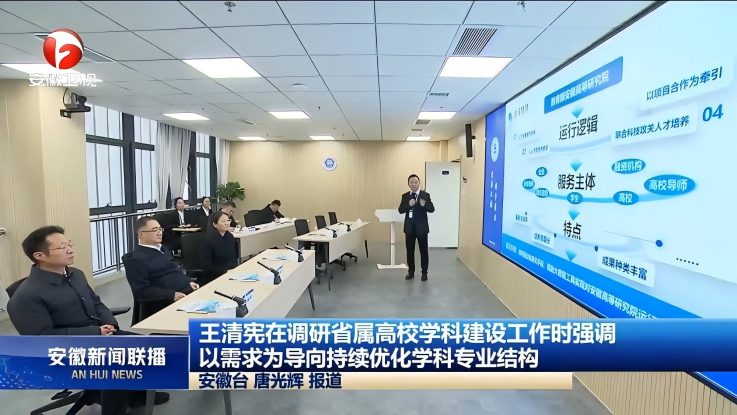 此外,平台建设亦获合肥市及省级相关部门关注支持。2025年12月26日,省发改委一行赴教育部高等研究院融合发展创新研究中心调研,与学校相关负责人围绕平台协同、资源整合等议题简要交流,为后续深化政产学研合作夯实基础;合肥市同步持续关注教育部高等研究院融合发展创新研究中心建设进展,积极对接资源赋能平台高质量发展。