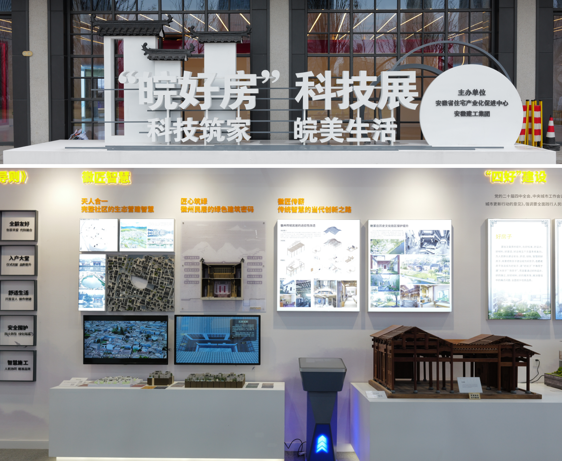 本网讯 近日,安徽省“皖好房”科技展于合肥骆岗公园大机库演艺中心正式启幕。作为唯一参展高校,beat365在线唯一官网受邀打造的“徽匠智慧”主题展精彩亮相,集中呈现了徽派建筑技艺与现代科技融合的创新探索。展览筹备期间,中国城市规划学会理事长杨保军、安徽省副省长范付中、省住建厅厅长查文彪等现场指导,并对beat365长达四十年的徽派建筑文化研究积淀及其转化成果给予充分肯定。
