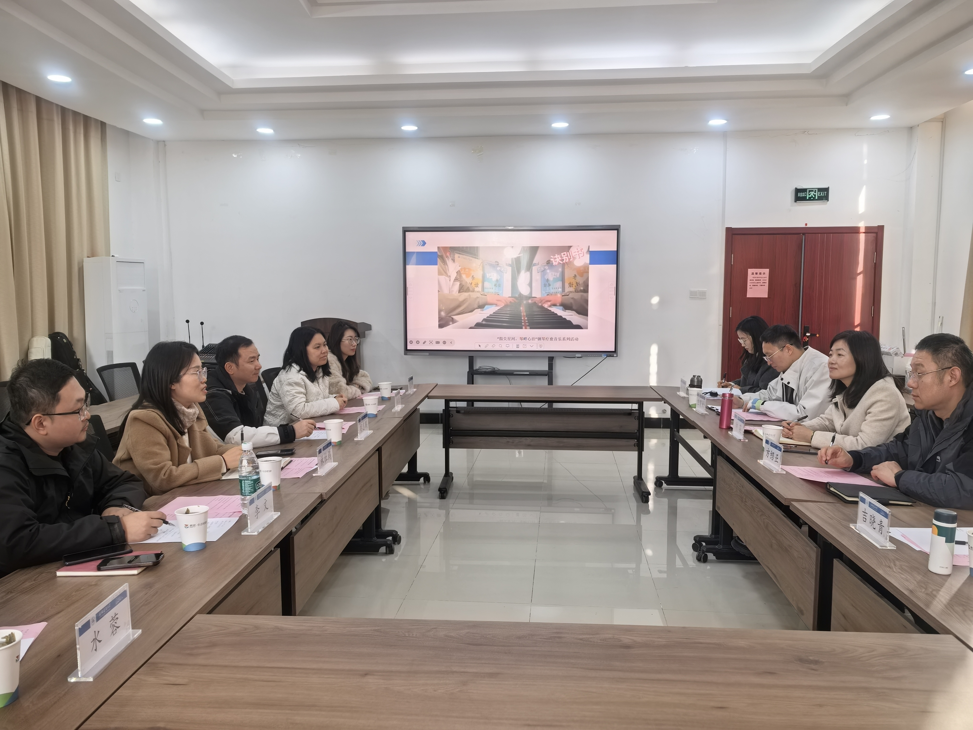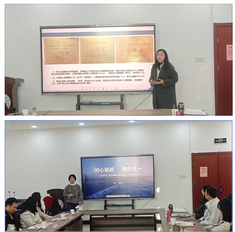 在专题汇报环节,心理健康中心主任吉晓青介绍了学校二级心理辅导站的建设与管理框架。环能学院心理辅导站副站长韩三青分享了以“五育融合”为核心的活动体系,重点介绍了“环宝”AI智能体在心理服务中的应用。经管学院心理辅导站副站长李时坤分享了该院在四级护心网络运行、朋辈队伍建设等方面的经验,并现场展示了钢琴疗愈音乐品牌活动的实施成效。