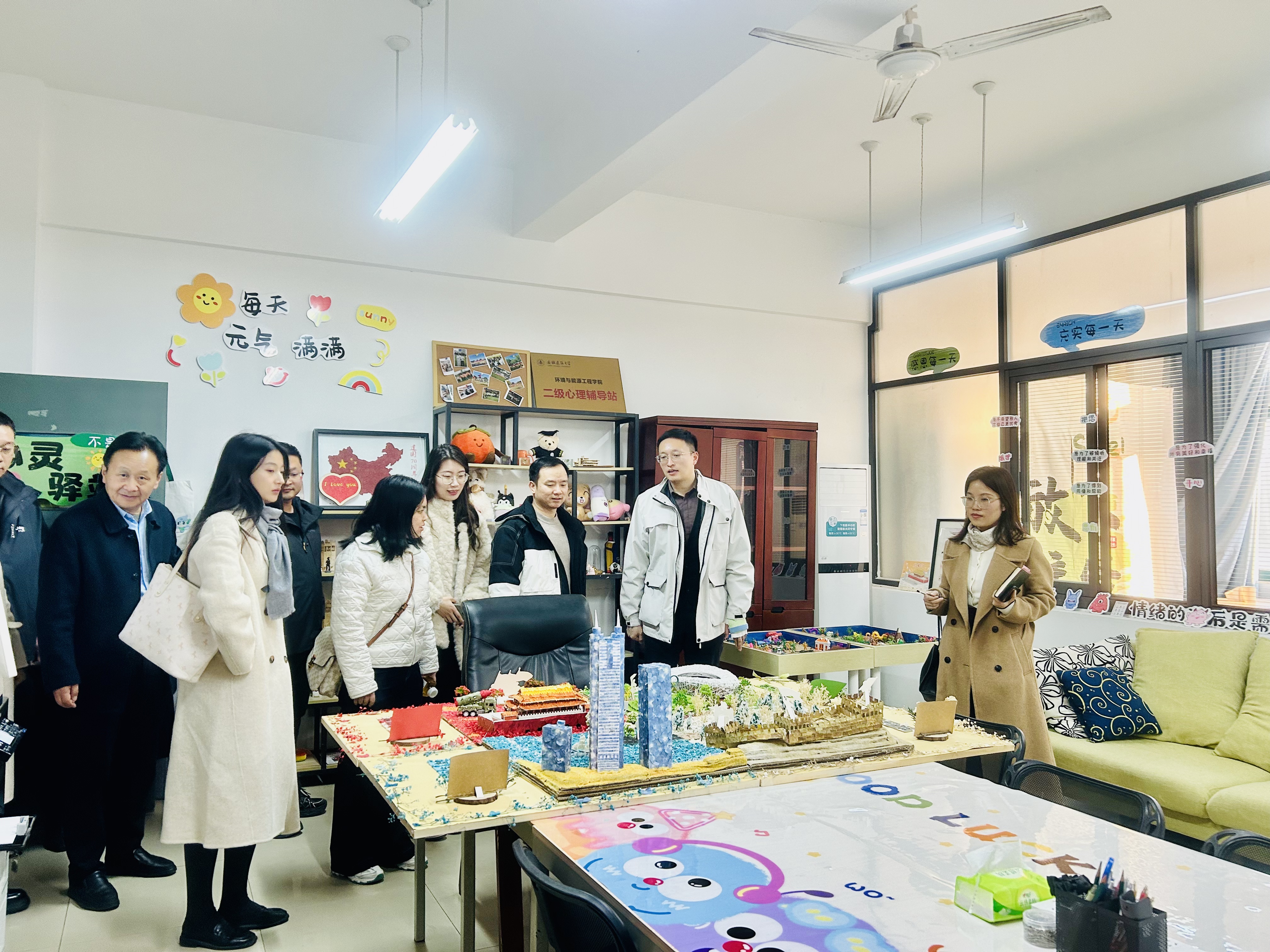 会后,与会人员实地参观了环能学院二级心理辅导站的各类功能区域,亲身体验了沙盘游戏、“环宝”AI智能体等设施。本次调研交流不仅深化了两校在心理健康教育领域的合作,也为构建协同育人新格局注入了活力。(作者:吉晓青;一审:方绍正;二审:帅英;三审:徐庆和)