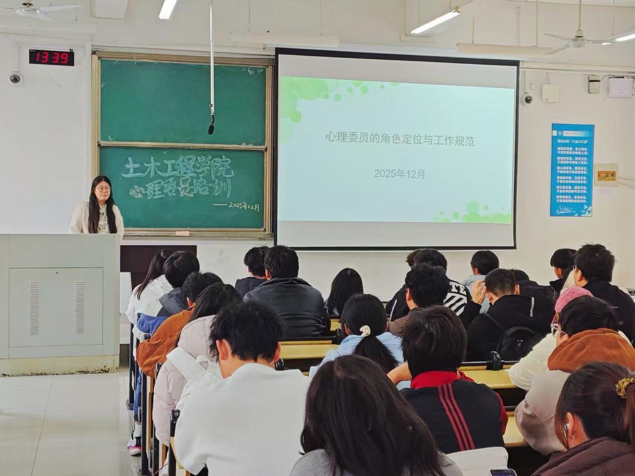 此次培训的顺利举办,有效提升了土木学院心理委员队伍的专业素养与履职能力,进一步明晰了心理委员的角色定位与工作路径。学院将以此次培训为契机,通过常态化工作例会、针对性专题辅导、心理活动策划大赛等多元形式,持续强化心理委员队伍建设,推动朋辈互助机制常态化、实效化运行。持续深化心理育人工作,充分发挥心理委员的桥梁纽带作用,为学生全面发展保驾护航,共同营造温暖健康、积极向上的校园育人氛围。(文/图:宋宝萍、刘政杭;一审:叶训;二审:马智鑫;三审:王媛)