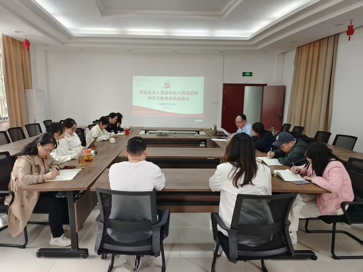 会议认为,党的十八大以来,习近平总书记和中央政治局以身作则,率先垂范,直面党内作风问题,推进全面从严治党,制定了中央八项规定,使党风政风焕然一新,社风民风持续向好。此次党中央决定在全党开展深入贯彻中央八项规定精神学习教育是党中央推进作风建设常态化长效化的重要举措,是持续纵深推进全面从严治党的必然要求,是实现新时代新征程目标任务的重要保障。学生处全体党员干部应当提高政治站位,深刻领会此次学习教育的重要意义,认真学习习近平总书记关于加强党的作风建设的重要论述,深入贯彻中央八项规定及其实施细则精神,自觉深学细悟精神实质,主动对标对表查摆问题,不断锤炼提升党性修养。