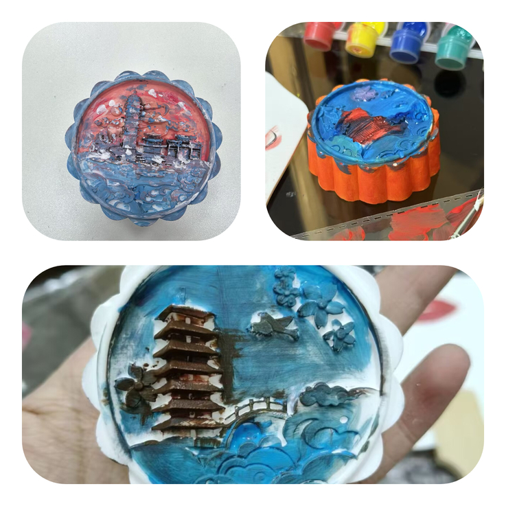 泥塑区域中,同学们以巧手塑造中秋意象——憨态可掬的玉兔、圆润可爱的月饼、传说中翩跹的嫦娥……寻常陶泥在指尖焕发出生动形态。大家在捏塑与打磨的过程中沉浸式体验传统手工艺的趣味,以立体艺术形式再现中秋韵味,让民俗文化在实践创作中得以延续与活化。