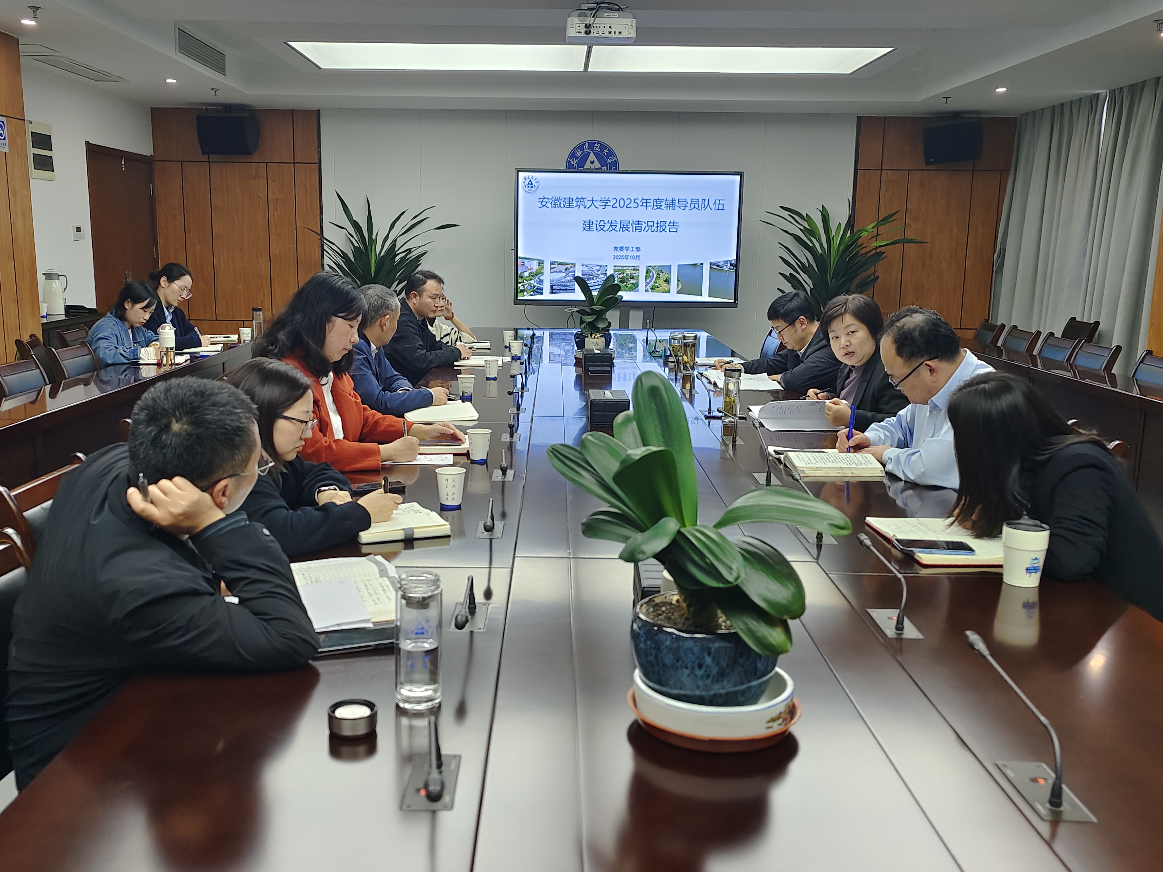 会上,学工部介绍了前期开展学校辅导员队伍建设的调研情况,并做了题为《beat365在线唯一官网2025年度专职辅导员建设发展情况》的专题报告。报告从两个维度展开:一是从十个方面对全校专职辅导员队伍整体建设情况进行了总结,指出了当前存在的主要问题,并围绕组织赋能、发展晋升、激励保障等方面提出了改进意见和建议;二是针对各学院辅导员队伍配置细节进行个性化梳理,明确当前队伍建设中的优势与待优化方向。