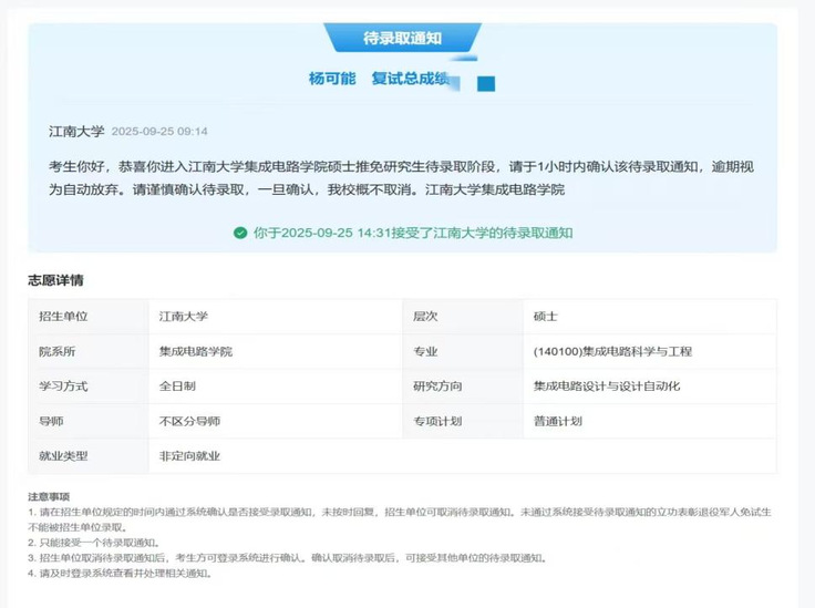 如今,少年怀揣初心,即将踏上新的征途。他感恩母校与学院的培养,更感谢每一位在成长路上给予帮助的老师与伙伴。未来,他将继续以“勤学固本”为帆,带着本科阶段积累的知识与经验在集成电路领域乘风破浪、扬帆起航。(文/图:吴雅婷、杨可能;一审:丁媛媛、方绍正;二审:帅英;三审:张润梅、徐庆和)