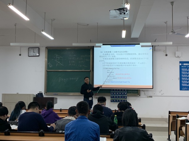 孙光灵老师有着麻辣教师之称,他在课堂上妙语连珠,深受学生的好评。在讲授函数的参数传递时,重点突出,举例恰当,课堂节奏把握非常好。