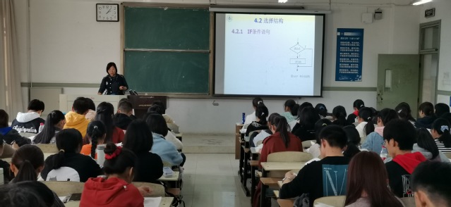 樊显昧老师教学经验丰富,讲课由浅入深、循序渐进地介绍了分支结构的原理及应用领域和范围,以生活中的常识为例讲述了分支结构实现的基本方法。樊显昧老师课堂驾驭能力很强,学生听课聚精会神,积极参与互动。
