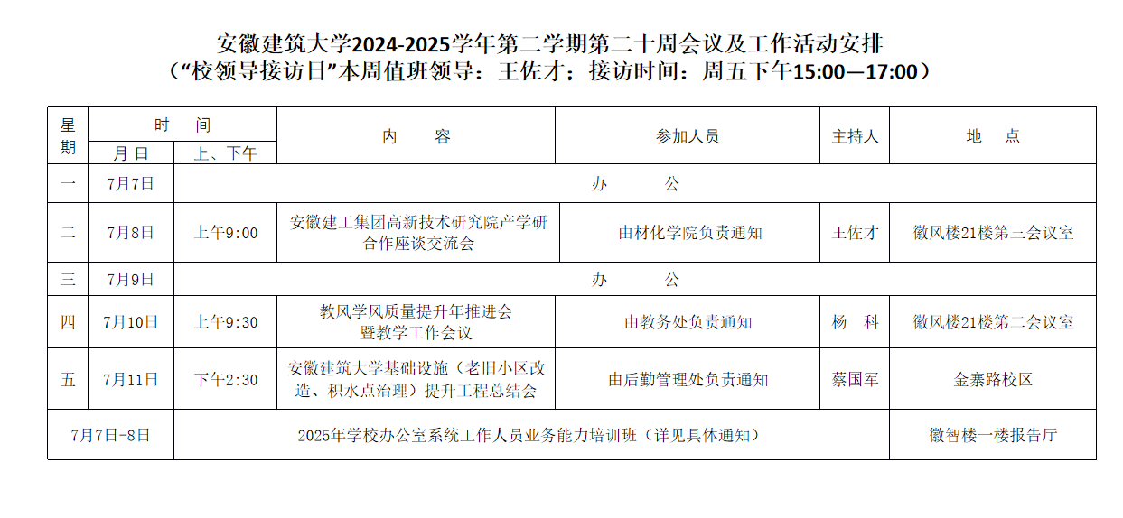 beat365在线唯一官网2024-2025学年第二学期第二十周会议及工作活动安排