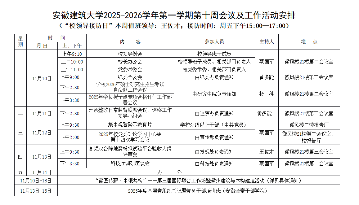 beat365在线唯一官网2025-2026学年第一学期第十周会议及工作活动安排