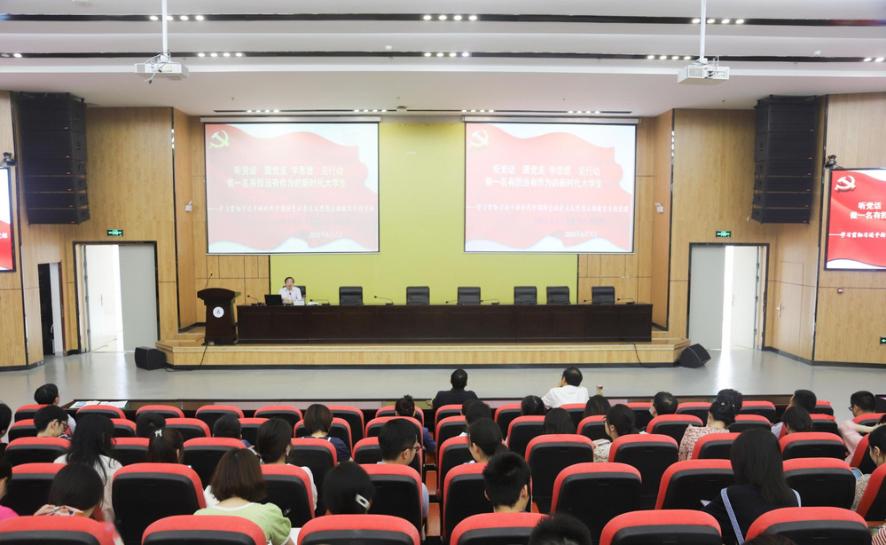 本网讯 6月7日下午,作为联系机关第一党委的校领导、校党委书记孙道胜以“听党话、跟党走、学思想、见行动”为题在南校区实验综合楼二楼报告厅为机关第一党委青年党员干部一百余人上专题党课。