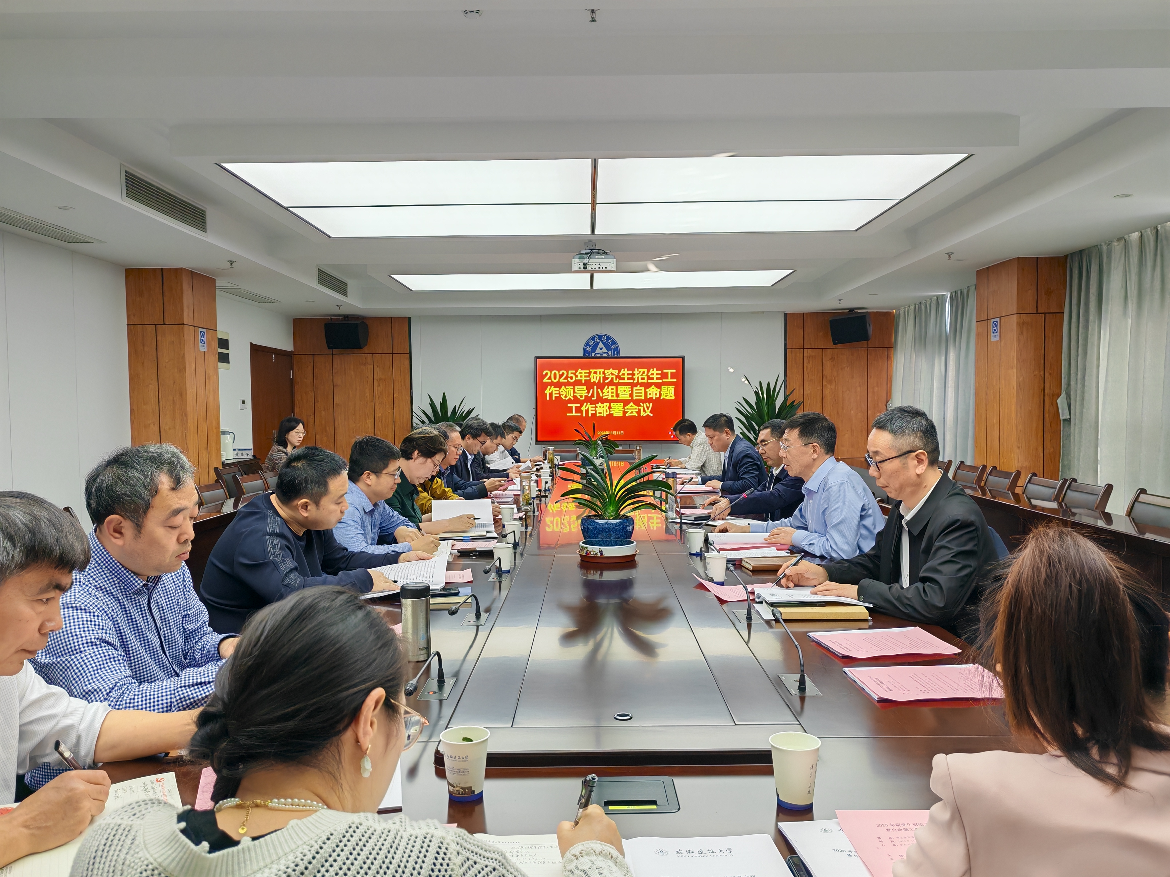 本网讯11月11日,学校在紫云路校区徽风楼21楼第五会议室召开2025年研究生招生工作领导小组暨自命题工作部署会议。学校研究生招生领导小组全体成员、研究生院有关人员参加会议,校党委常委、副校长蔡国军主持会议。