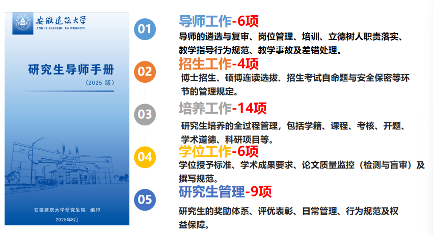 本网讯 五年夯基垒台,立柱架梁;五载深耕细作,春华秋实。“十四五”期间,学校研究生教育坚持以立德树人为根本,紧密围绕国家战略与区域发展需求,秉持“打好‘建’字牌、做好‘徽’文章、走好应用路”的发展理念,系统推进研究生教育综合改革,在制度建设、招生选拔、培养模式、学位质量、导师队伍与学术创新等方面协同发力,推动研究生教育实现系统性提升与内涵式发展。