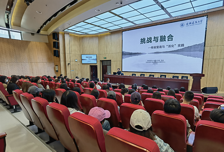 本网讯 5月10日下午,艺术学院举办题为“挑战与融合--传统营造与‘活化’”实践”的学术讲座,讲座由艺术学院副院长邢瑜主持,主讲人为黄成教授,该讲座拉开了艺术学院校庆月系列学术活动的序幕,是学院教授博士系列论坛第一场。
