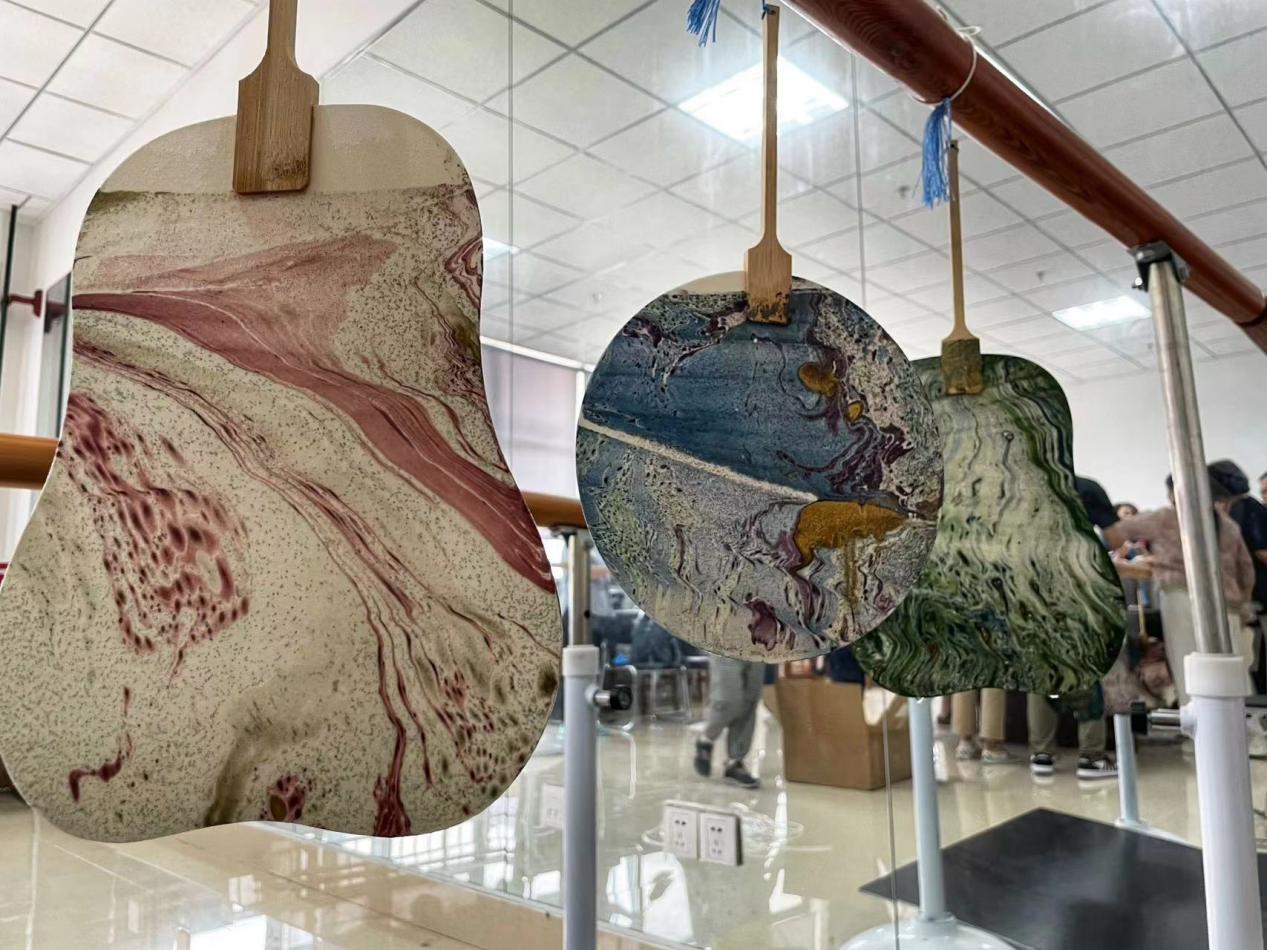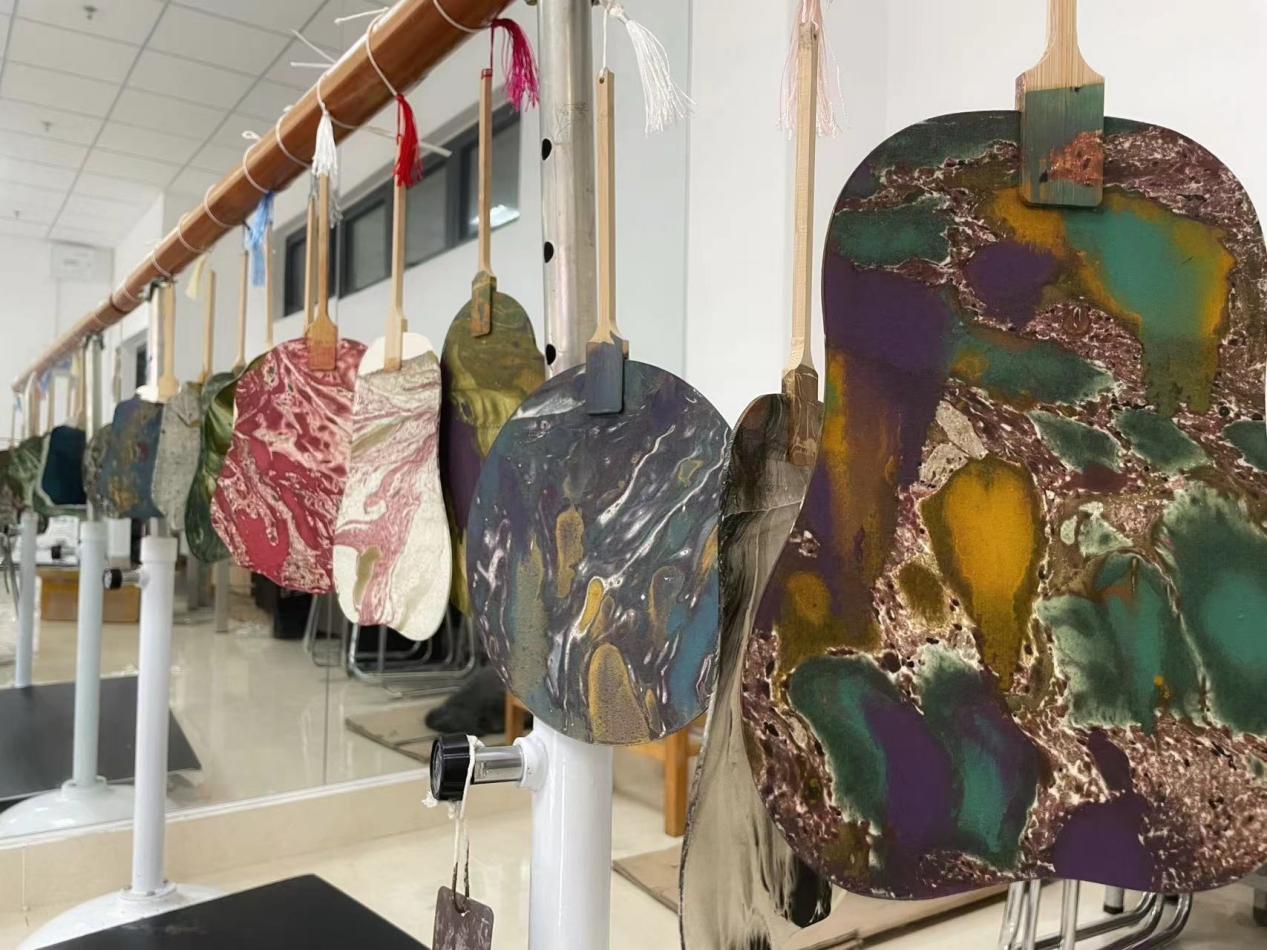 本次活动吸引了学校多个部门的教职工参加,大家都感受到了这漂漆技艺的魅力,一把把美丽多彩的漆扇,瞬间就已挂满了活动现场。琳琅满目的漆扇,有的像敦煌壁画,有的像莫奈花园……美轮美奂,精彩纷呈。