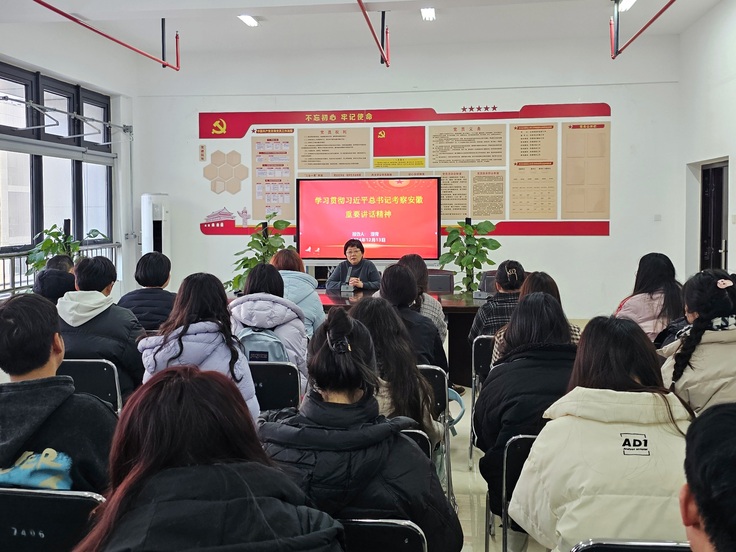 潘青从充分认识重大意义、深刻领会丰富内涵、切实推动落地生根三个方面,对习近平总书记考察安徽重要讲话精神进行系统阐释和深入解读。她强调,要把学习宣传贯彻习近平总书记三次考察安徽重要讲话精神与学习贯彻党的二十届三中全会精神结合起来。学生党员应深入学习领会习近平总书记在全会上的重要讲话精神,全面准确理解《决定》提出的进一步全面深化改革重大举措,加强理论学习,提高政治站位,深刻领会其核心要义、精神实质、丰富内涵和实践要求。同时学生党员还要发挥先锋模范作用,不断提升个人的综合素质与能力,积极投身于社会实践之中。