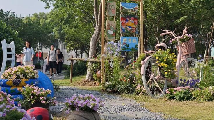 学院组建“徽匠园丁”团队打造“艺憩青屿”共建花园,回收废弃自行车、轮胎等材料进行艺术化改造,构建可持续社区花园。同学们通过5天跨专业协作,在旧物新生中体会劳动疗愈价值。该项目对艺术学院劳动教育具有重要价值,下一步将积极探索跨院系快闪花园、艺术沙龙等系列课程实践活动,并同步申报全国社区花园设计竞赛,以实际行动传播艺术学院在社区微更新、人才培养等方面的研究和实践成果,实现“劳动实践+心理健康”双重育人目标。