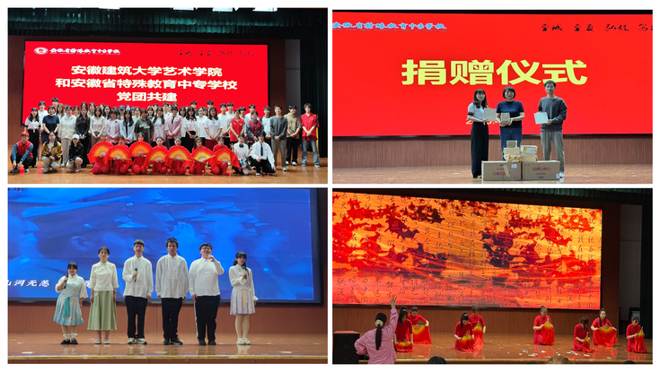 艺术学院本科生和研究生党支部携手学院团委,赴安徽省特殊教育中专学校开展“双向赋能助力成长”党团共建特色活动,积极践行党建引航、同心筑梦的教育模式。特教学生分享了成长感悟,盲人学生演唱《如愿》,聋哑学生表演舞蹈《木兰行》,传达了他们对生活的热爱和在困难面前的坚毅。艺术学院学生呈现心理情景剧《勇气》并合唱《夜空中最亮的星》。艺术学院学生党支部书记向特教学校赠送了52套绘画工具和书籍。通过海报创作、手语学习及中医按摩体验,实现了知识和技能的双向传递,在双向赋能中促进了青年学生的共同成长。特教学生表示,感受到了来自安建大艺术学院学长的温暖与支持,更加坚定了他们奋勇前行的信念和勇气。艺术学院学生体会到服务社会是党员的责任担当,并感受到特教学生的坚定与力量。本次活动加深了双方情谊。