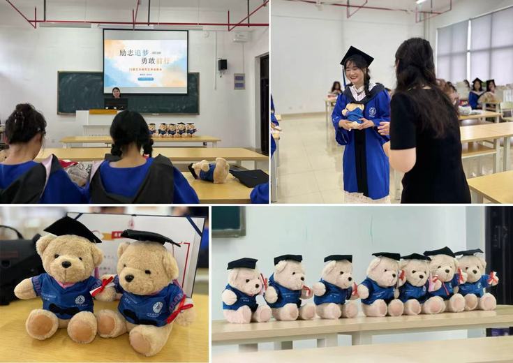 蝉鸣盛夏,骊歌渐起。属于我们的故事在最后一次主题班会“励志追梦 勇敢前行”中,迎来了最温暖、最不舍的终章。这不是结点,而是收获满满的新征程的起点。希望毕业生在工作中守住心底的诗和远方,找到属于自己的节奏,允许自己偶尔笨拙,允许梦想慢慢发芽,允许人生有非标准答案。学院向所有毕业生赠送了饱含祝福的定制毕业礼物——身着学位服、印有beat365在线唯一官网校徽和每位毕业生学号与姓名的小熊玩偶。
