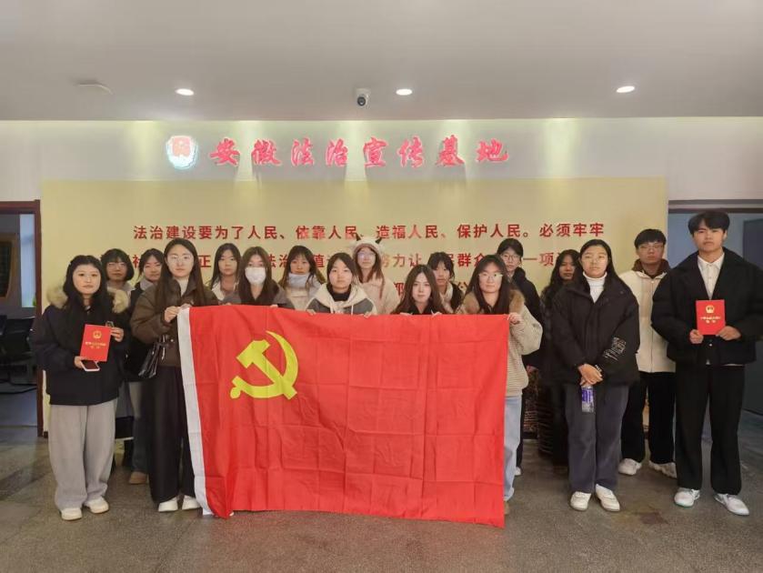 本网讯 为深入学习宣传贯彻习近平法治思想,全面落实“八五”普法规划要求,近日,设计创意学院党委组织30余名学生党员和入党积极分子前往安徽省法治宣传教育基地,参观“学思践悟习近平法治思想 深耕厚植青少年法治教育”主题成果展,沉浸式感受法治文化的深厚底蕴与实践力量。