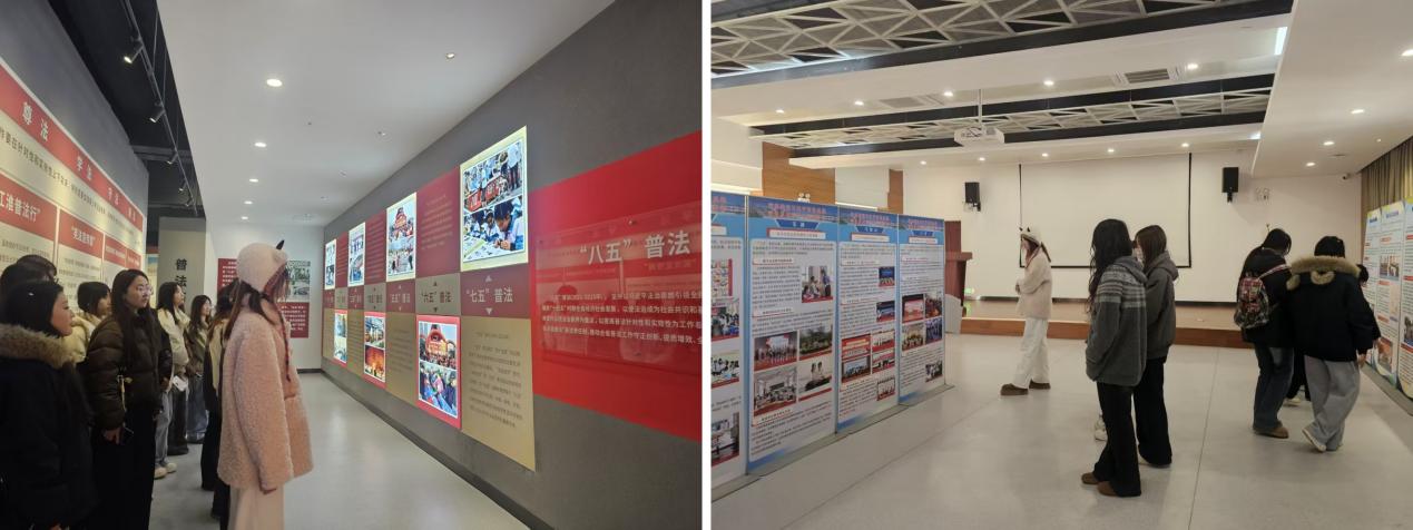 展区内的“八五”普法专题板块、法治教育成果展示等内容,呈现了安徽省青少年法治教育的成果。大家时而驻足凝视,认真听取讲解员对典型案例的剖析;时而低声交流,分享着对法治精神的感悟与思考。同学们表示,通过观展,深刻认识到法律的严肃性和不可逾越性,在今后的学习和生活中时刻绷紧法律这根弦,做知法、懂法、守法、用法的新时代大学生。