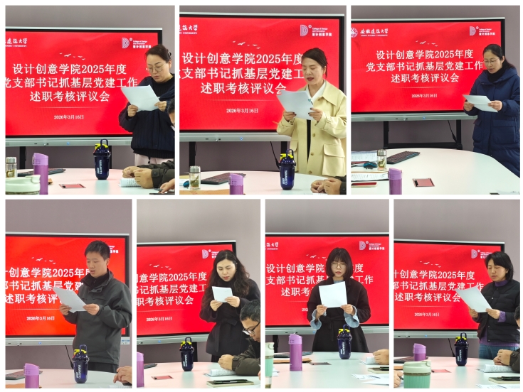 本网讯 为深入贯彻新时代党的建设总要求和新时代党的组织路线,压紧压实党支部书记政治责任,推动基层党建工作提质增效,3月16日下午,设计创意学院党委召开2025年度支部书记抓党建述职评议考核会议。学院党委委员、党支部书记和党员代表参加,会议由学院党委书记潘青主持。