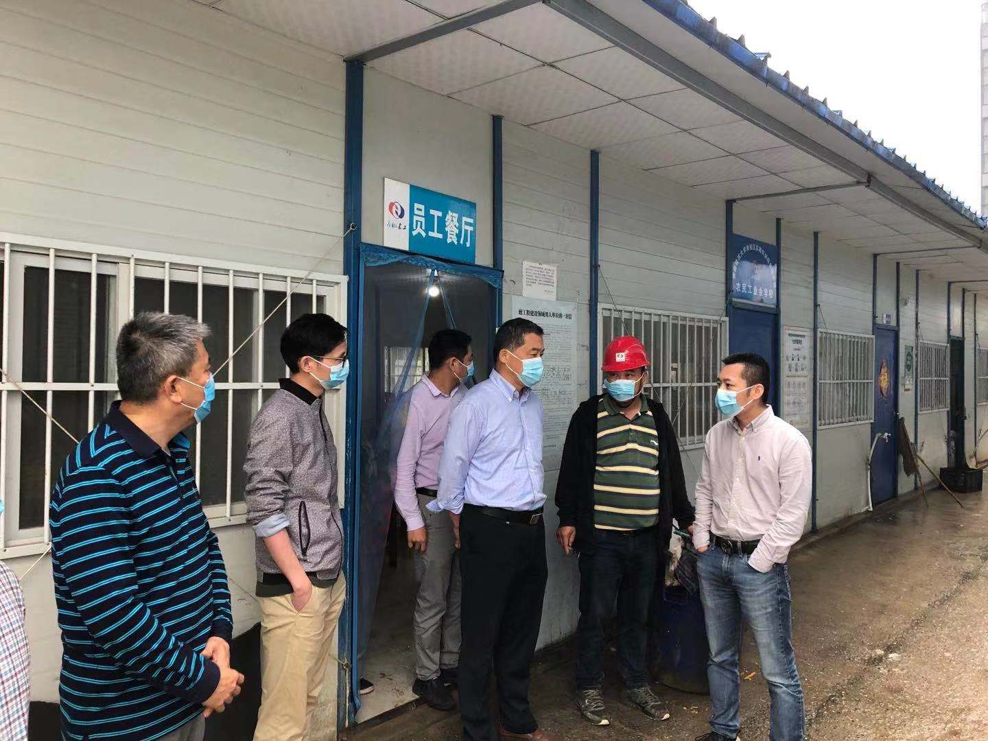黄镭先后来到项目部会议室、食堂、工人宿舍、工地入口考勤系统测体温现场,实地查看新冠肺炎疫情防控工作落实情况。