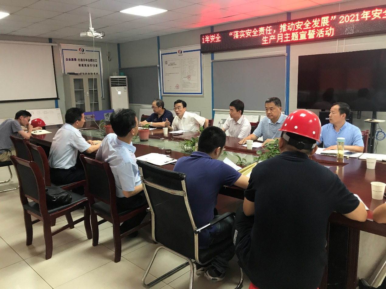 本网讯 2021年6月10日,校党委书记、校长孙道胜在南校区实验实训综合楼项目部会议室主持召开工程建设推进会,副校长成祖德,合肥建工集团有限公司总经理朱海生、三分公司经理孙永祥,项目经理、总监、校国资处负责人参加会议。
