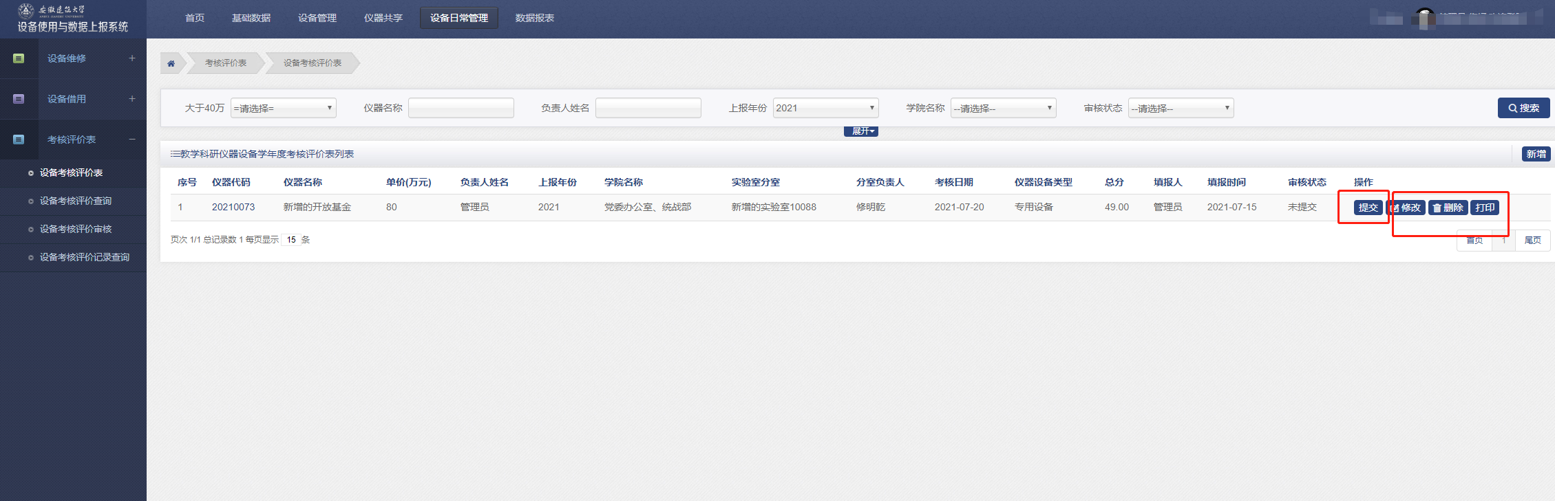 所有提交的设备考核评价表在此审核。