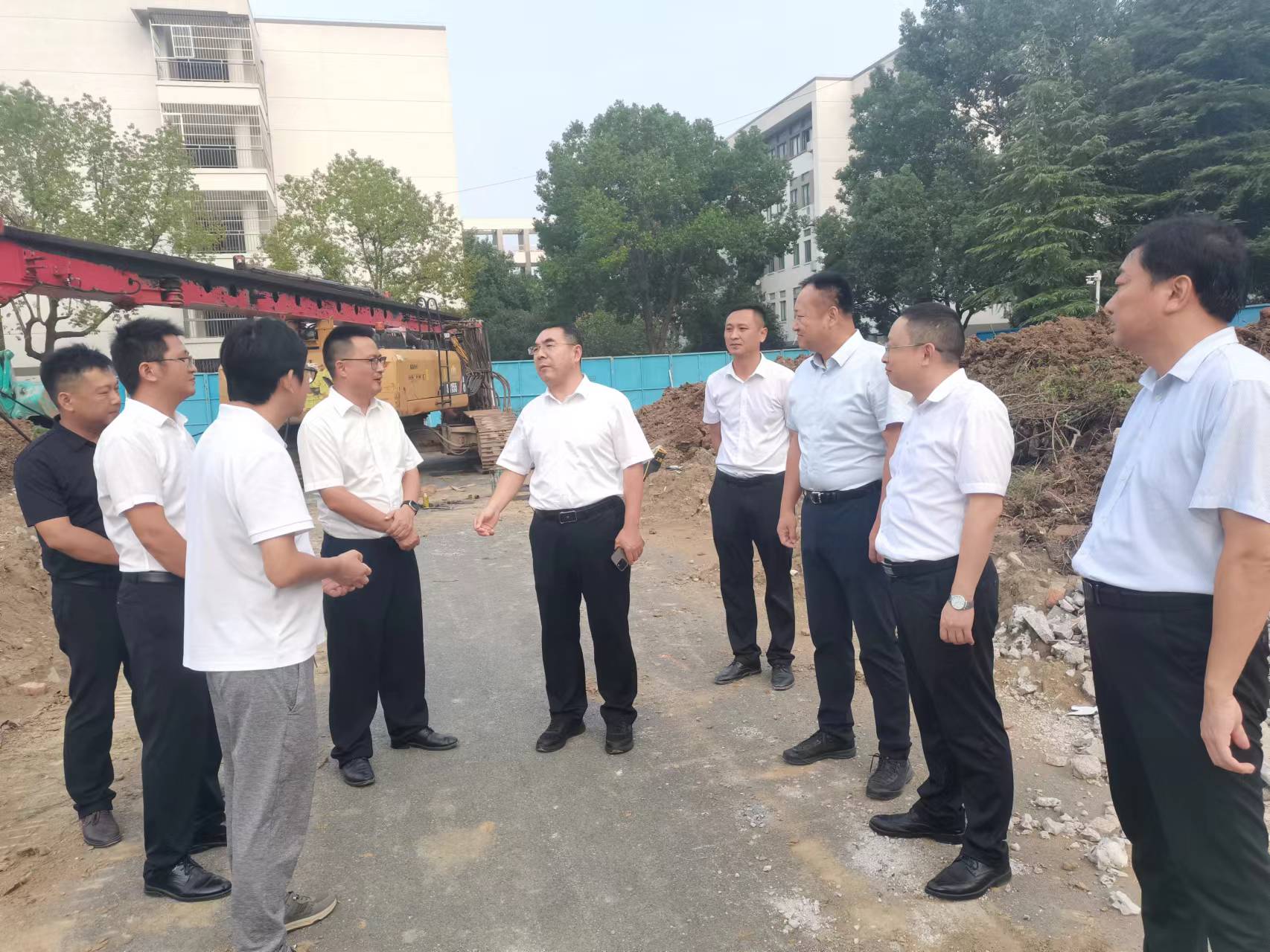 本网讯 9月23日下午,校党委副书记、校长蔡国军,校党委常委、副校长高跃峰在国有资产管理处(基建办)、后勤管理处相关负责同志陪同下,先后来到土木楼改扩建项目、新南园餐厅(科技孵化中心)项目施工现场检查指导工作。