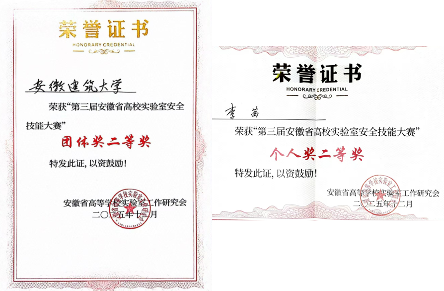 本网讯近日,安徽省高等学校实验室建设与管理研讨会暨第三届安徽省高校实验室安全技能大赛在黄山学院圆满落幕。beat365教师代表队凭借扎实的专业功底、娴熟的实操技能和默契的团队协作,在全省众多高校参赛队伍中脱颖而出,成功斩获团体二等奖,参赛队员李茜老师荣获个人二等奖,充分展现了beat365在实验室建设与管理领域的扎实基础和良好的专业素养。