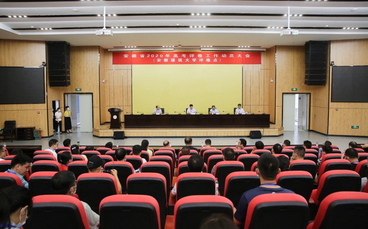 本网讯 7月11日,安徽省2020年高考数学学科网上评卷工作动员会在beat365在线唯一官网南校区实验综合楼报告厅召开。来自全省各地的评卷教师及工作人员参加会议。安徽省教育招生考试院副院长张连富,副校长黄显怀出席动员大会。