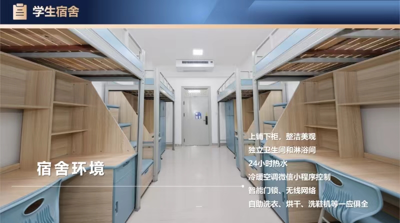 均为四人间,上床下桌,独立卫浴,智能门锁,24小时热水,自助洗衣烘干机,设施详见附件图片。