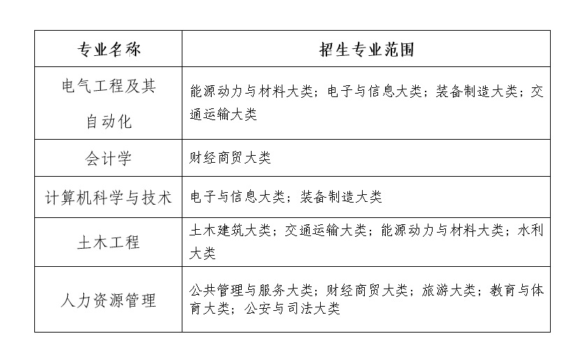 2.所有考生(含技能大赛、退役士兵等各类鼓励政策考生)毕业专业均须符合本表要求;