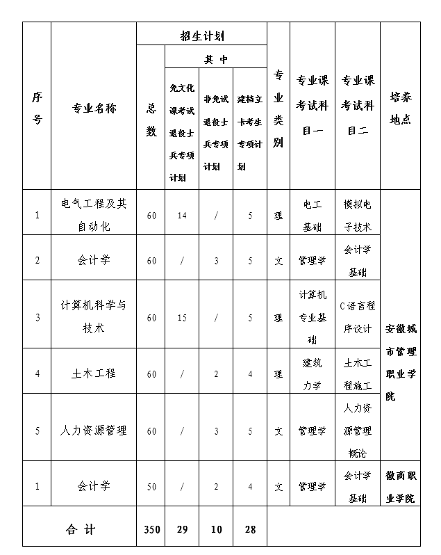 2.报考免文化课考试退役士兵专项计划的考生须为在安徽省应征入伍的大学生兵源,具体包括: