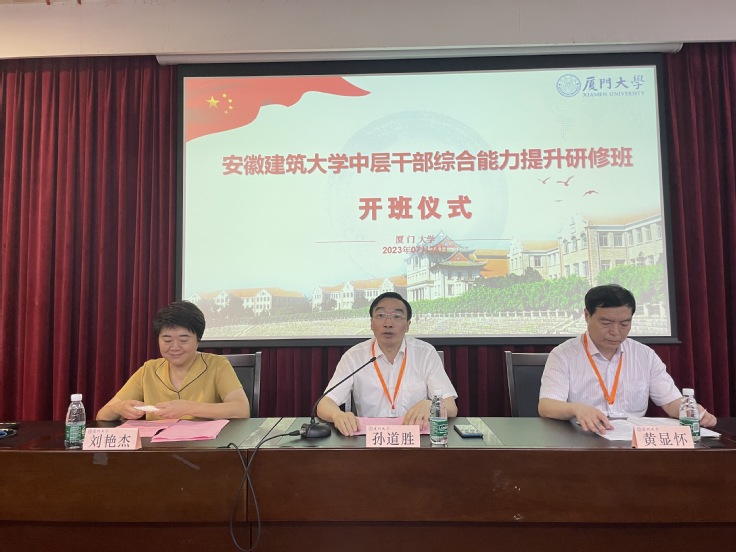 本网讯 为深入学习贯彻习近平新时代中国特色社会主义思想和党的二十大精神,推深做实主题教育,深刻领会习近平总书记关于党的建设的重要思想、精神实质和实践要求,深刻领悟“两个确立”的决定性意义,坚持用党的科学理论武装头脑,指导实践、推动工作。2023年7月24日至27日,学校2023年中层干部综合能力提升研修班在厦门大学顺利开班,校领导、学校中层干部及民主党派负责人127人参加培训班。校党委书记孙道胜,校党委副书记、校长黄显怀,厦门大学公共事务学院党委书记刘艳杰出席开班仪式。