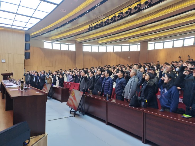 会议开始之前,唐劲松带领学院全体党员师生进行政治理论学习,并重温入党誓词,鞭策和激励大家更加坚定为共产主义事业奋斗终生的理想信念。
