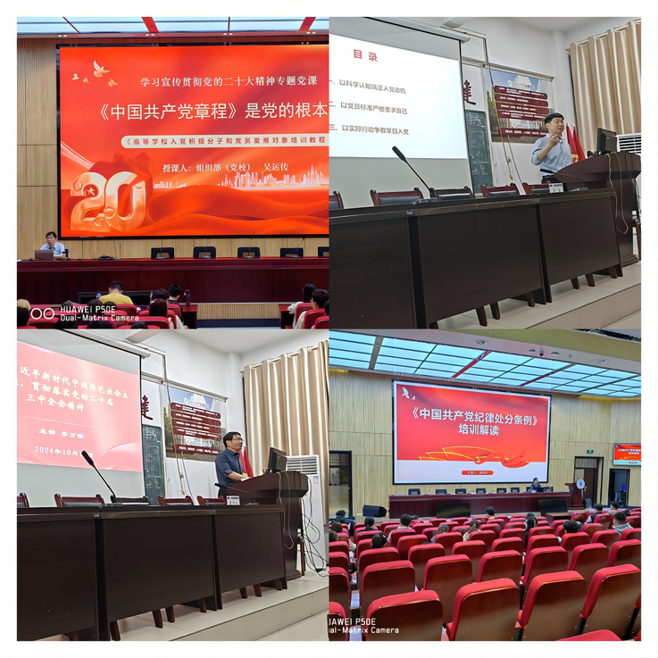 为推深做实大学生入党积极分子示范培训,学校党校按照“一统四有五必”要求,精心谋划培训方案,科学设置培训课程,经省委教育工委、省委组织部审核把关后,认真组织实施示范班教育培训工作。培训内容涉及专题讲座、案例教学、视频教学、现场教学、分组研讨、交流总结等环节。专题讲座聚焦《高等学校入党积极分子和党员发展对象培训教程》,邀请组织部(党校)、统战部、马克思主义学院、纪委办公室等单位负责人,分别讲授“党章是党的根本大法”“端正入党动机争取早日加入中国共产党”“中国共产党党员的条件、义务和权利”、“深入学习习近平新时代中国特色社会主义思想和党的二十届三中全会精神”“中国共产党纪律处分条例解读”等课程。在培训班结业式,及时跟进学习习近平总书记考察安徽重要讲话精神。