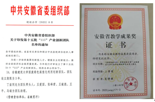 认真学习贯彻习近平总书记关于高校教师队伍建设的重要论述,近年来,工作室坚持引育并举,从同济大学、东南大学和武汉理工大学等国内外知名院校全职引进优秀博士3名、博士后2名,聘请武汉理工大学丁庆军教授、同济大学张祖华教授作为校外导师;支部党员教师王爱国、刘开伟等5位同志分别赴澳大利亚、美国等高校进行学习交流,开拓国际视野,拓展对外交流。发挥传帮带作用,通过结对帮扶、教学培训、教学竞赛等方式,积极帮助青年教师成长进步,着力提升青年教师教育教学水平和科学研究能力,着力构建一支师德高尚、业务精湛、结构合理、充满活力的教师队伍。支部党员刘开伟获安徽省高校杰出青年项目资助,马瑞、杨军获安徽省高校优秀青年项目资助;王爱国获安徽省青年拔尖人才称号、张高展获安徽省杰出青年称号,丁益、张高展获批安徽省领军人才特聘教授,马瑞、任启芳在学校2022年课程思政讲课比赛中分别荣获一等奖、二等奖;杨军在第五届全国土木工程材料讲课比赛一等奖,并获得学校2023年“优秀教师”称号;拥有以党支部教师为主体的安徽省115产业创新团队1个、安徽省优秀科研创新团队--先进建筑材料创新团队1个;工作室负责人吴修胜参与的“建筑功能材料”教学团队获批省级教学团队、“厚德强基为先,实践创新并举”无机非金属材料工程专业育人模式获安徽省教学成果二等奖。